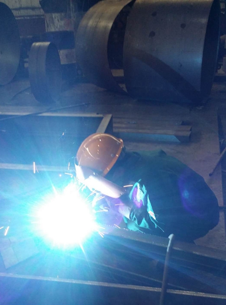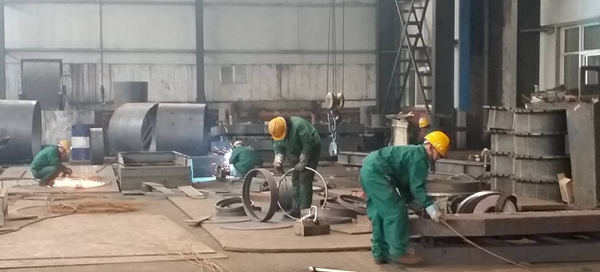 在班長(cháng)劉學(xué)斌的帶領(lǐng)下,鉗工班全體成員每天加班加點(diǎn)趕活。正值數九寒天,室外溫度已到零下七度以下,室內現場(chǎng)大家干的卻是熱火朝天。焊光閃爍,焊花飛揚,多臺焊機滿(mǎn)負荷工作;作為第一道下料工序的等離子氣割采用兩班運行,人停車(chē)不停,深夜12點(diǎn)依然照常運轉,為各種工件的按時(shí)完成做足準備。
