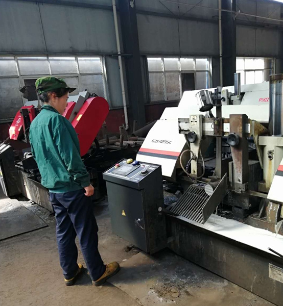 我們的女員工充分詮釋了“女漢子”的含義,一人同時(shí)操作四臺鋸床,同時(shí)發(fā)力,吊裝、安防、裝夾、輸入參數、開(kāi)動(dòng)運行。在她的精準操作下,四臺設備你追我趕,吹響進(jìn)攻號角。各式車(chē)床飛速旋轉、鐵屑四濺,暗青色的毛坯在刀尖下逐漸脫去外衣,閃現出耀眼的鋼鐵本色,車(chē)燈燈光透過(guò)車(chē)工臉上晶瑩剔透的汗珠,折射在工件上,色彩交相輝映。專(zhuān)注、堅定的眼神注視著(zhù)刻度盤(pán)和游標卡尺,在他們眼里,一絲一毫的偏差都是不可逾越的紅線(xiàn)。銑床、鏜床、龍門(mén)刨飛轉的刀盤(pán)迅捷滑過(guò)毛坯表面,鐵屑在空中飛出美麗的“華爾茲”。焊光閃閃,氣割在鋼板上平穩橫移,一件件工件應聲而落,圖紙上的一個(gè)個(gè)線(xiàn)條在鋼板上精準實(shí)現。